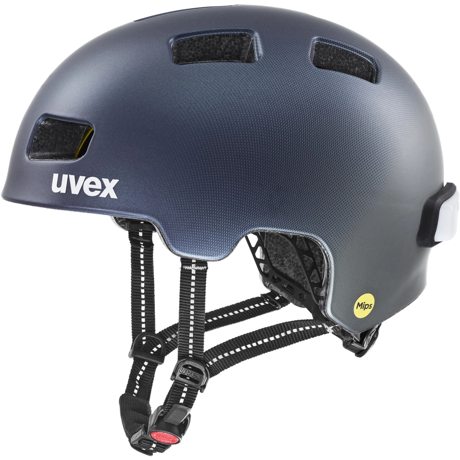 Minimalist design meets maximum safety – the uvex city 4 MIPS is the ideal companion for the big city. The super-light inmould helmet can be perfectly adjusted to every head shape with 3D IAS system in height and width. For even more safety, the urban trendsetter is equipped with integrated MIPS. In case of an impact, MIPS effectively reduces the rotational forces acting on the brain and thus provides additional protection. The further safety package includes a deep neck area for improved impact protection at the back of the head, an integrated plug-in LED as well as reflective webbing and logos for more visibility in road traffic.